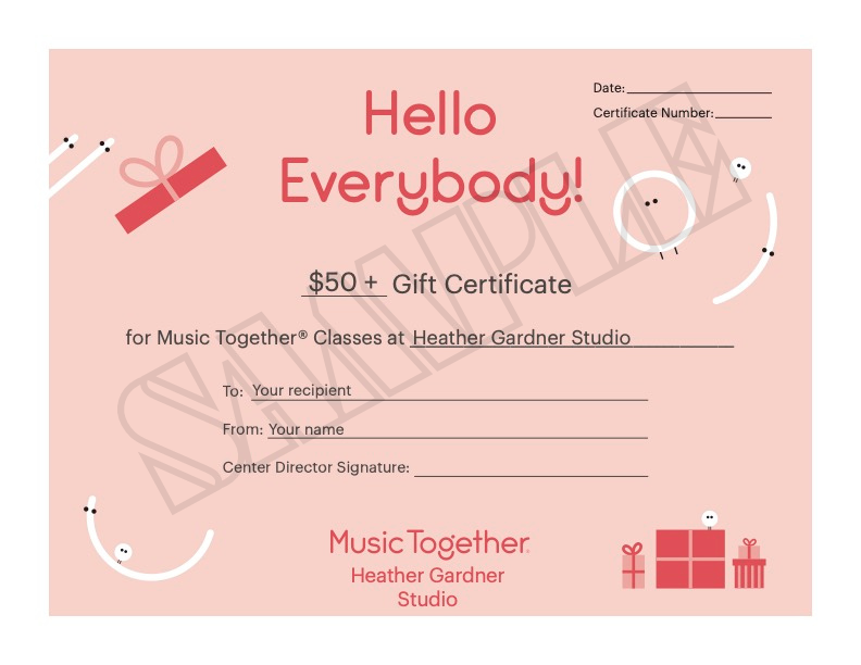 Give the gift of musical play! You may purchase a gift certificate for $50 or more.